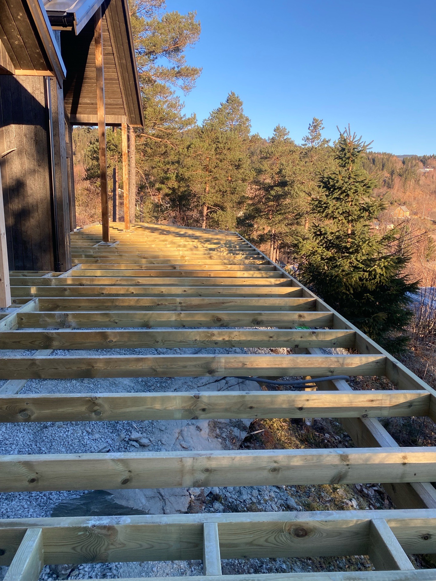 En solid og stødig terrasse trenger riktig forarbeid. Vi gjør hele jobben enten du skal ha terrasse på grunn, på taket, eller som en del av huset ditt. Vi fundamenterer og støper søyler dersom det er behov.